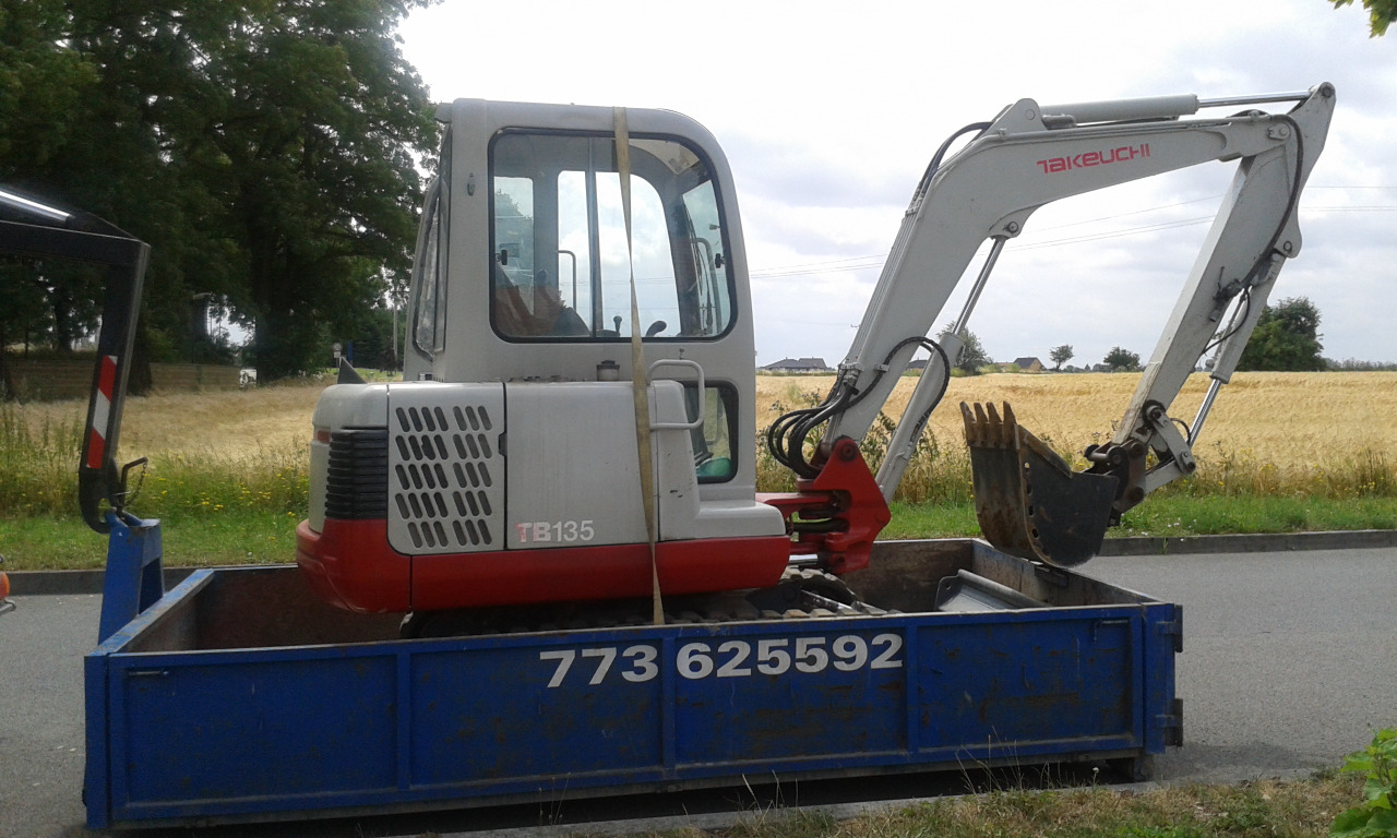 Dále nabízíme zemní a výkopové práce pásovým bagrem. K dispozici máme několik velikostí lžic na výkopy základů a svahovku. Po domluvě je také možné naložení odváženého materiálu do kontejneru.